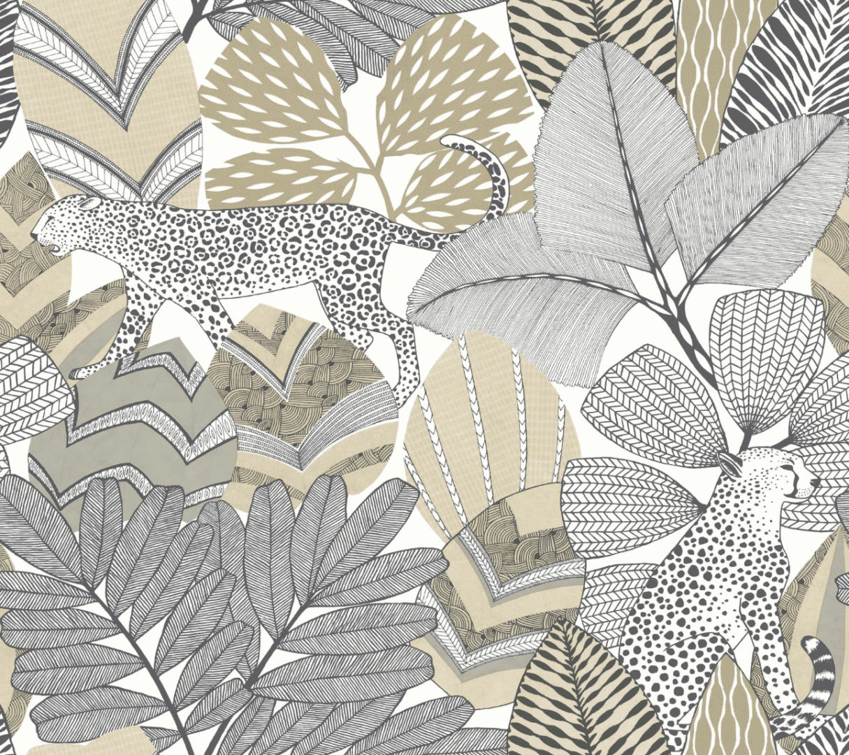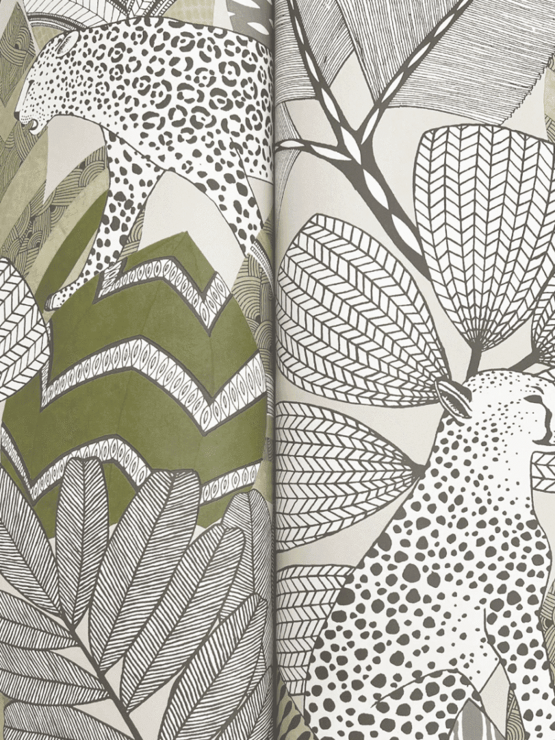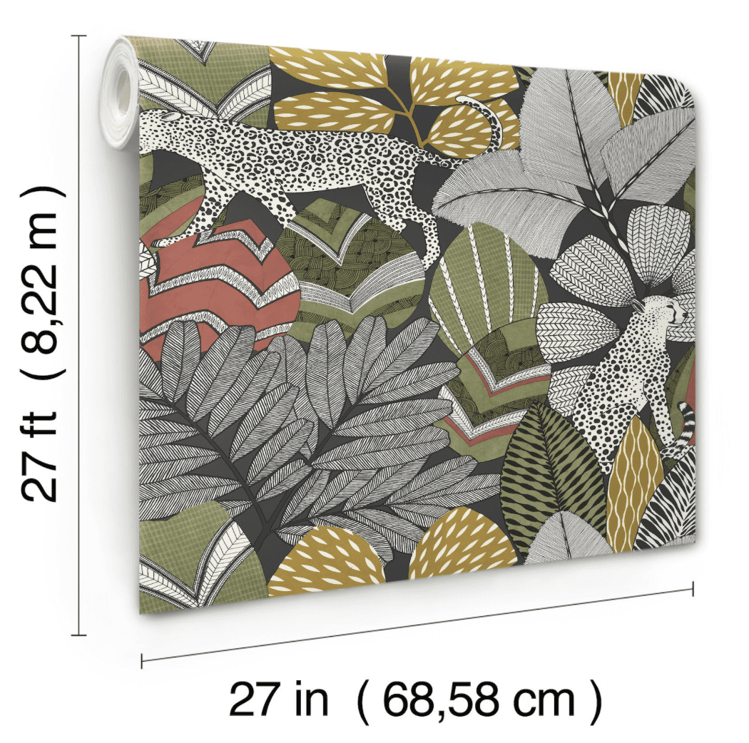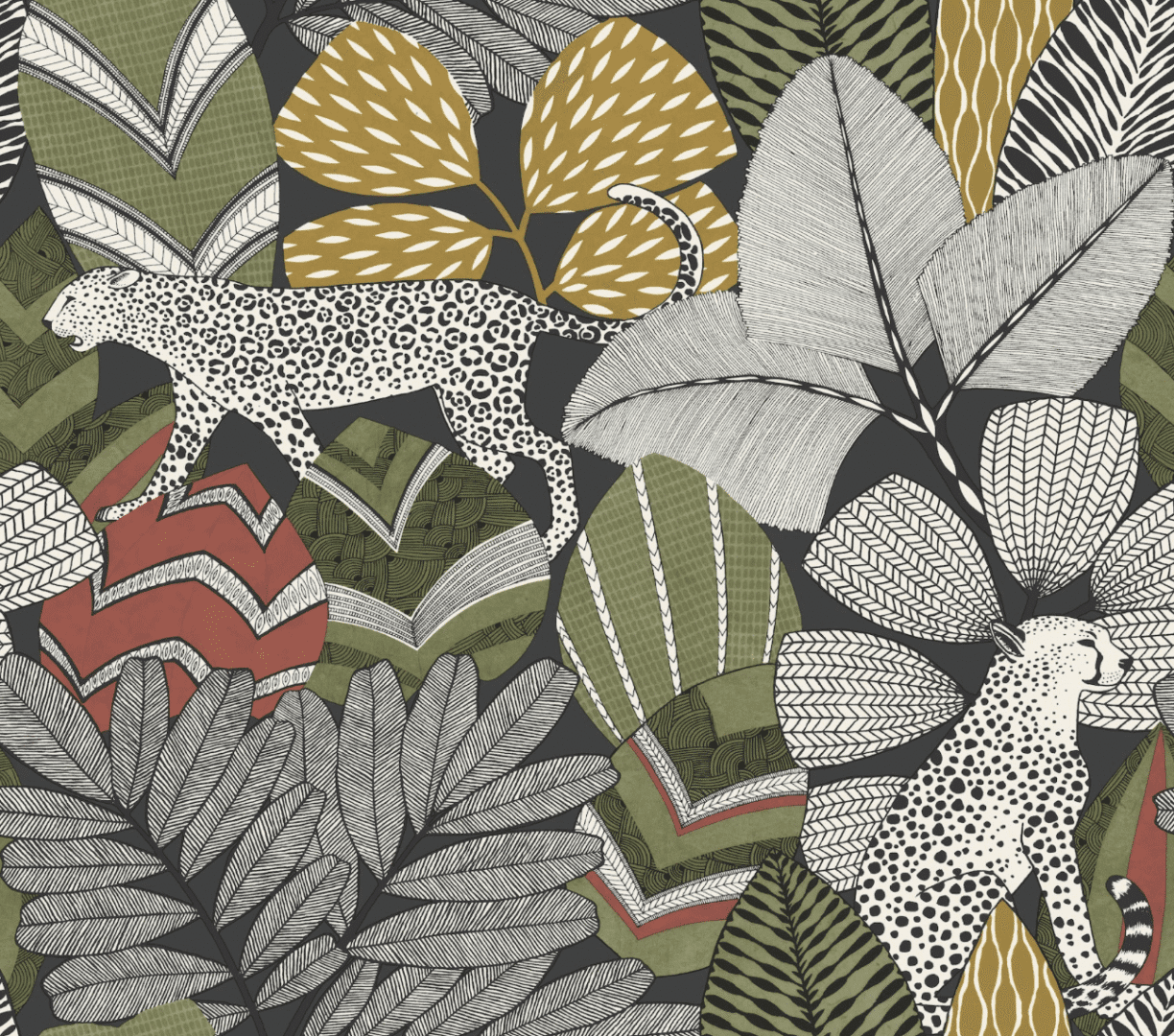 Wildcats prowl through dense, richly patterned foliage in this fiercely sophisticated wallpaper, adding bold drama and exotic elegance to any space.