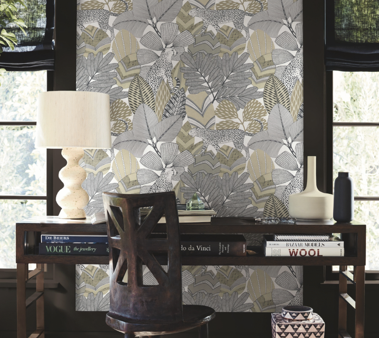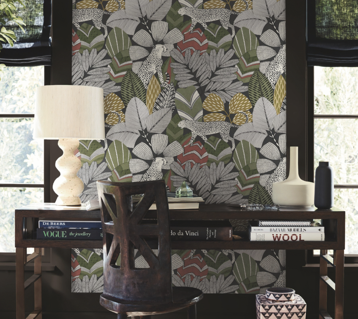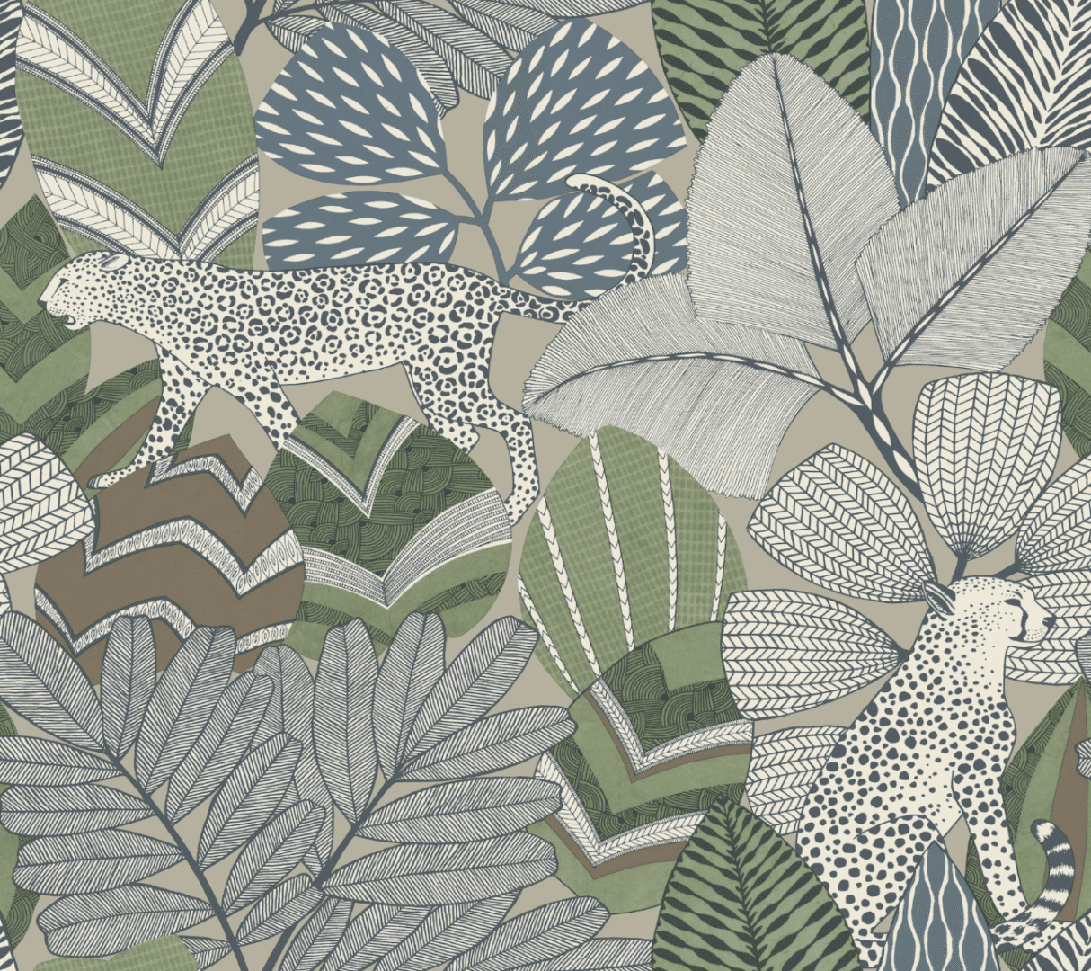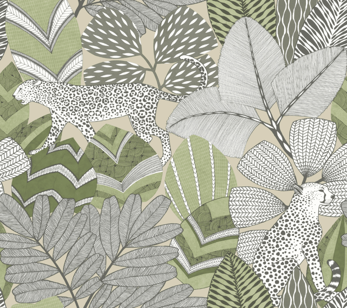 Wildcats prowl through dense, richly patterned foliage in this fiercely sophisticated wallpaper, adding bold drama and exotic elegance to any space.