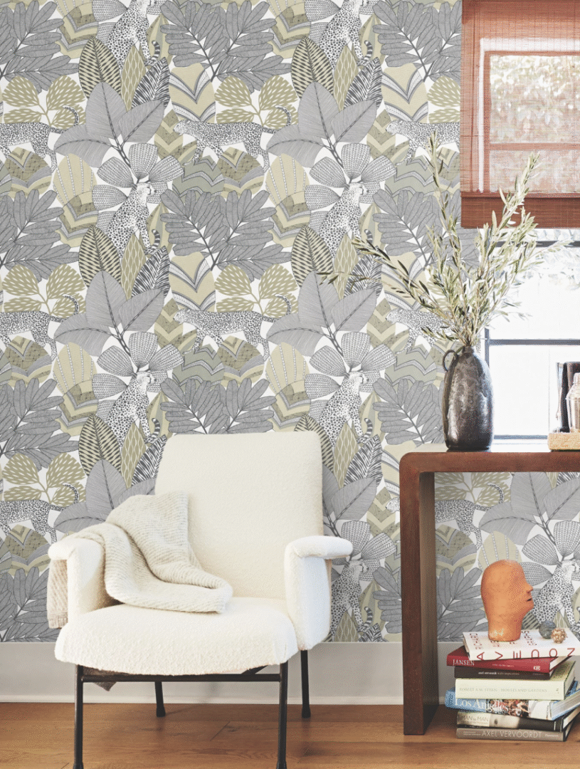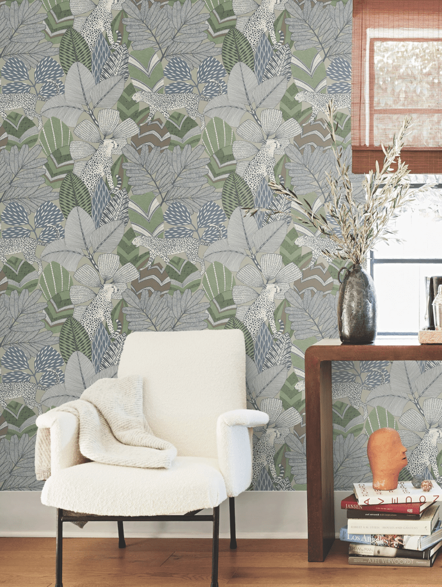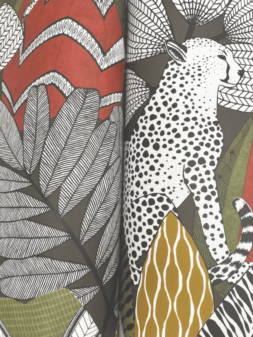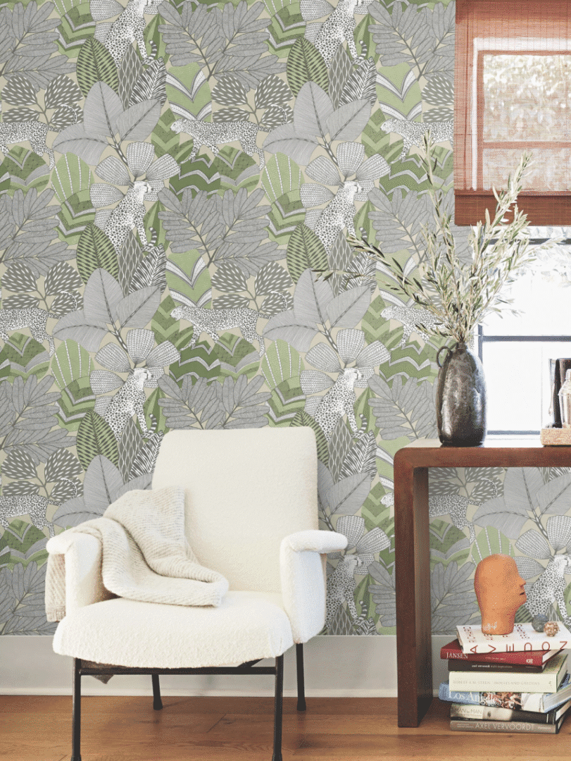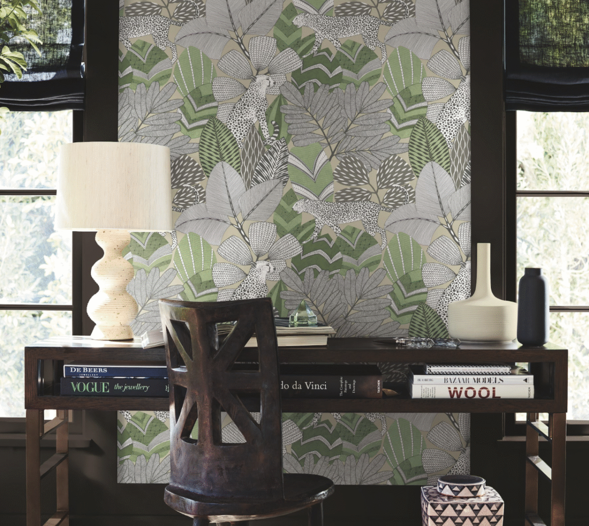 Wildcats prowl through dense, richly patterned foliage in this fiercely sophisticated wallpaper, adding bold drama and exotic elegance to any space.