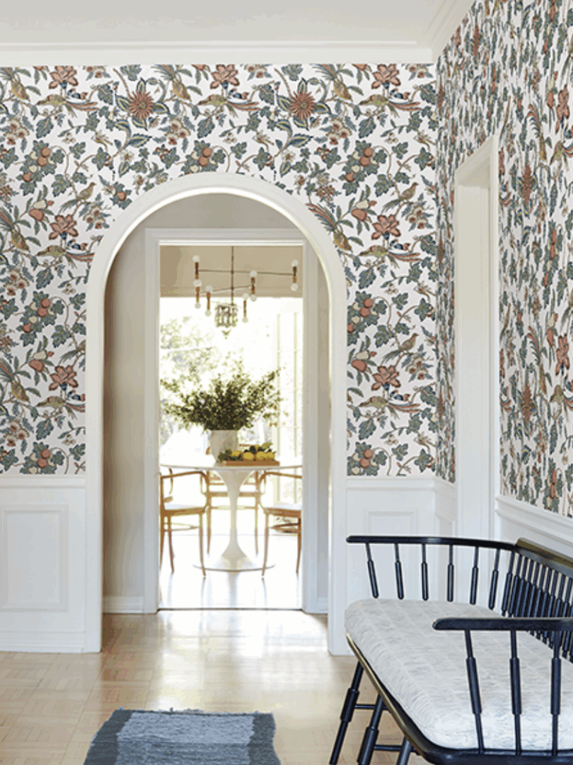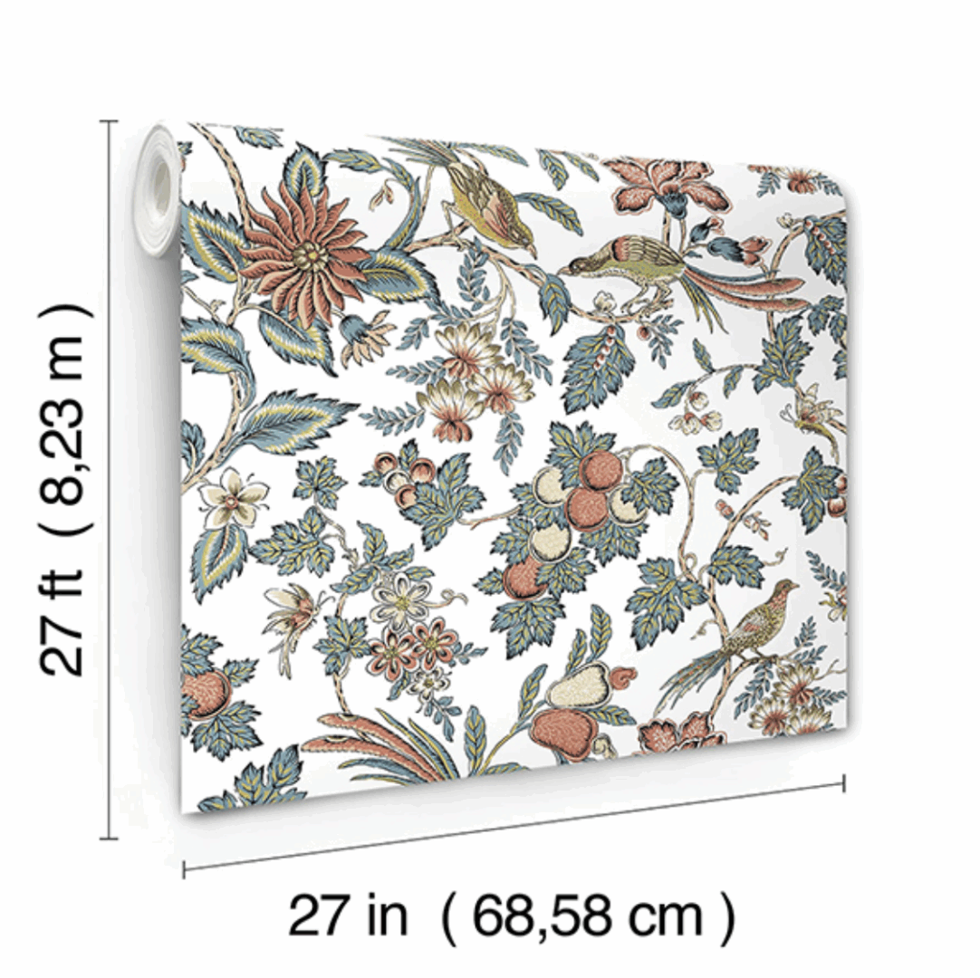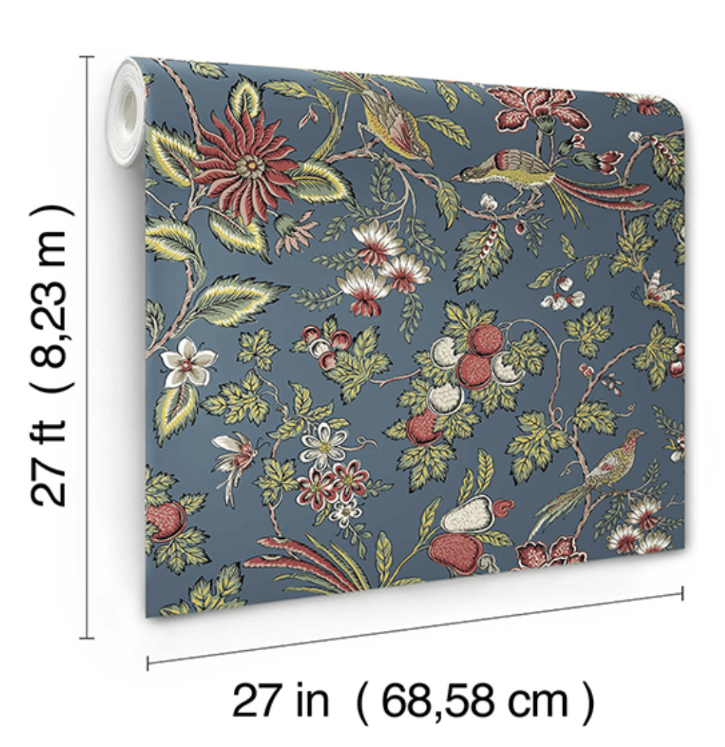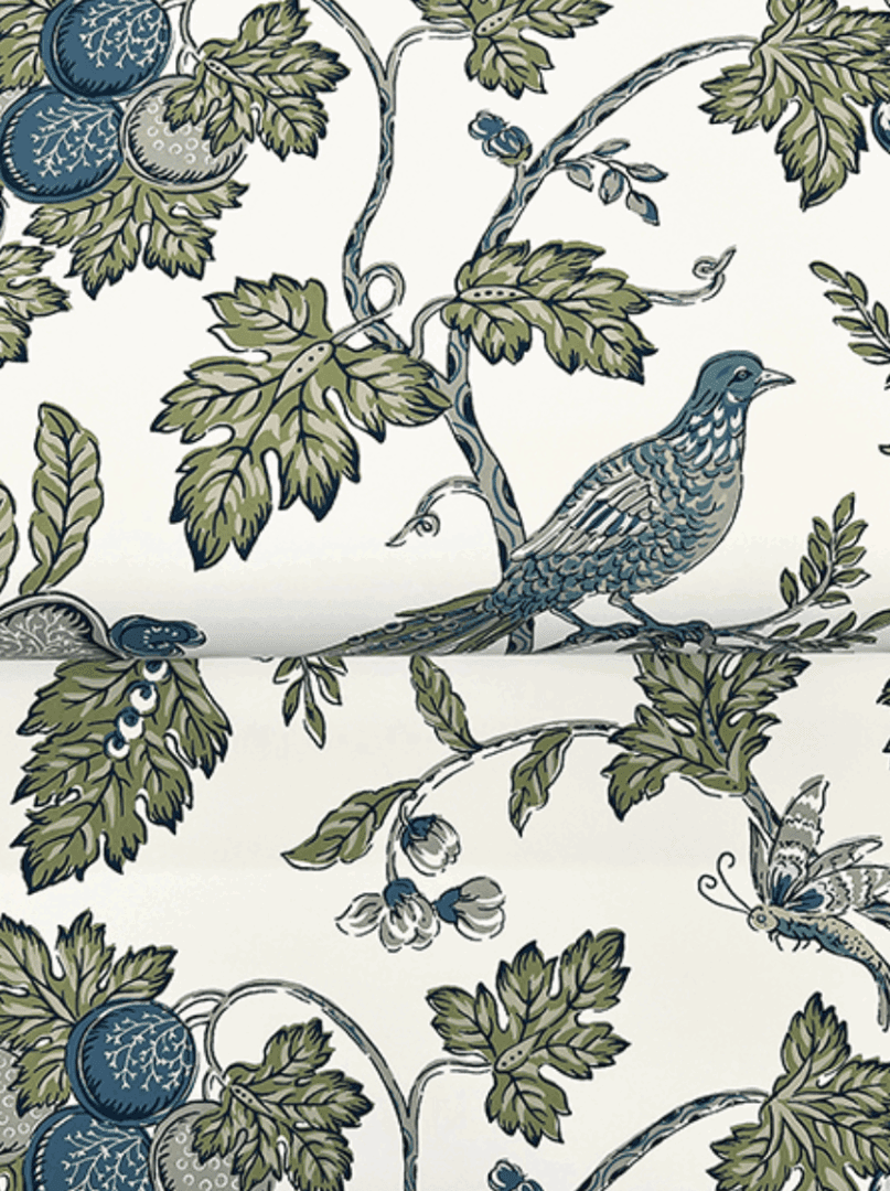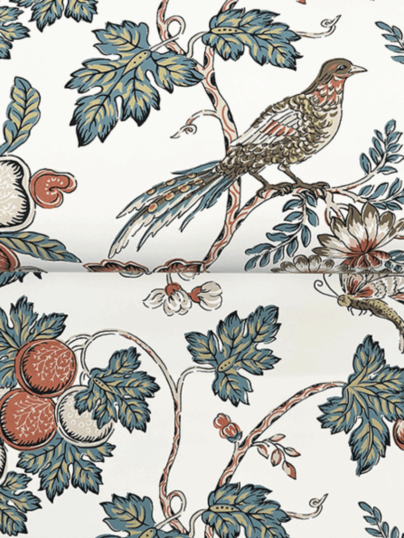 Intricate Jacobean trails of lush blooms and ripened fruit are beautifully interwoven with exotic birds and delicate butterflies in the Parterre pattern.