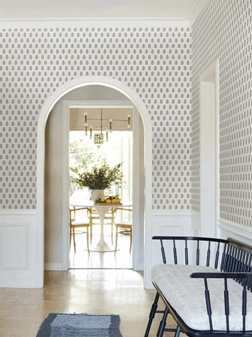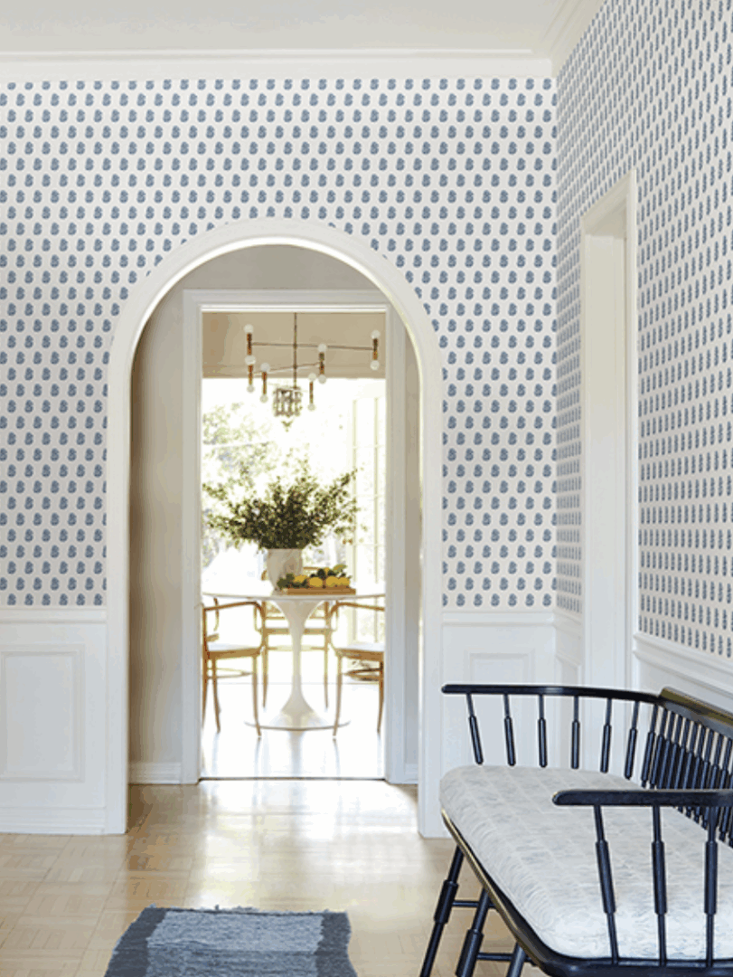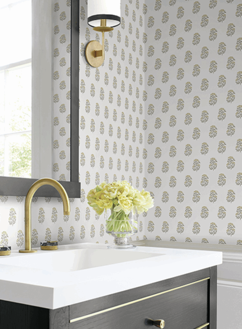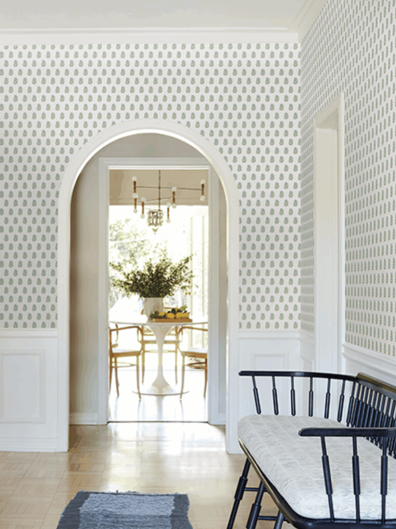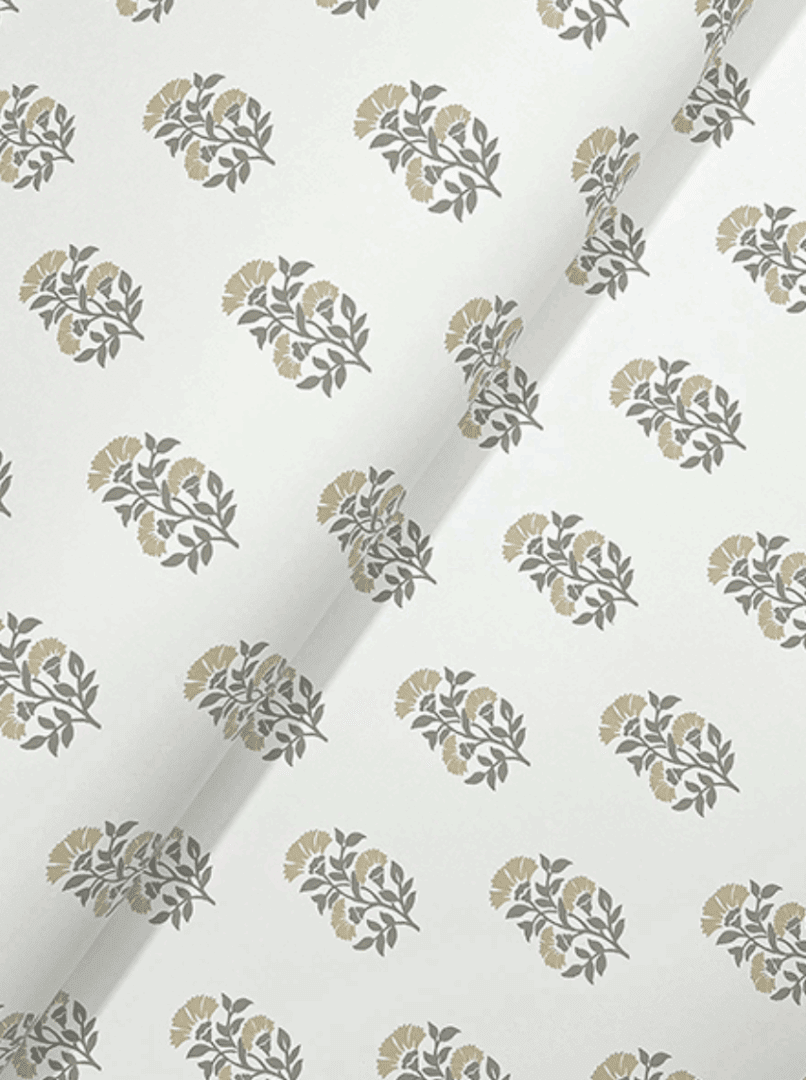 In this pattern, delicate fanning flowers are artfully stamped in offset rows, adding beautiful elegance and charm to any room.